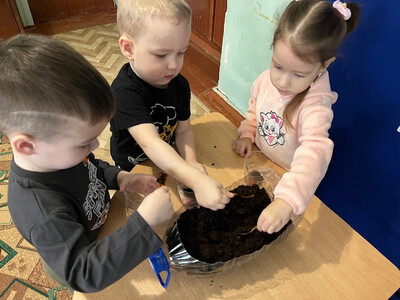 В младшей группе «Непоседы» наступил волнительный день – день посадки лука! Малыши впервые познакомились с профессией огородника, и это знакомство прошло на «ура». Все началось с рассматривания луковицы. Ребята узнали, что у нее есть золотистый «кафтанчик» из шелухи, донышко и верхушка, откуда выглядывает зеленый носик. Самым интересным этапом стала посадка в стаканчики с землей. Сколько было сосредоточенных лиц, когда маленькие ручки аккуратно делали ямку и опускали туда луковку! Кто-то шептал луку «баю-бай», а кто-то обещал прийти завтра с водой. |