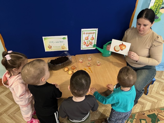В младшей группе «Непоседы» наступил волнительный день – день посадки лука! Малыши впервые познакомились с профессией огородника, и это знакомство прошло на «ура». Все началось с рассматривания луковицы. Ребята узнали, что у нее есть золотистый «кафтанчик» из шелухи, донышко и верхушка, откуда выглядывает зеленый носик. Самым интересным этапом стала посадка в стаканчики с землей. Сколько было сосредоточенных лиц, когда маленькие ручки аккуратно делали ямку и опускали туда луковку! Кто-то шептал луку «баю-бай», а кто-то обещал прийти завтра с водой. |