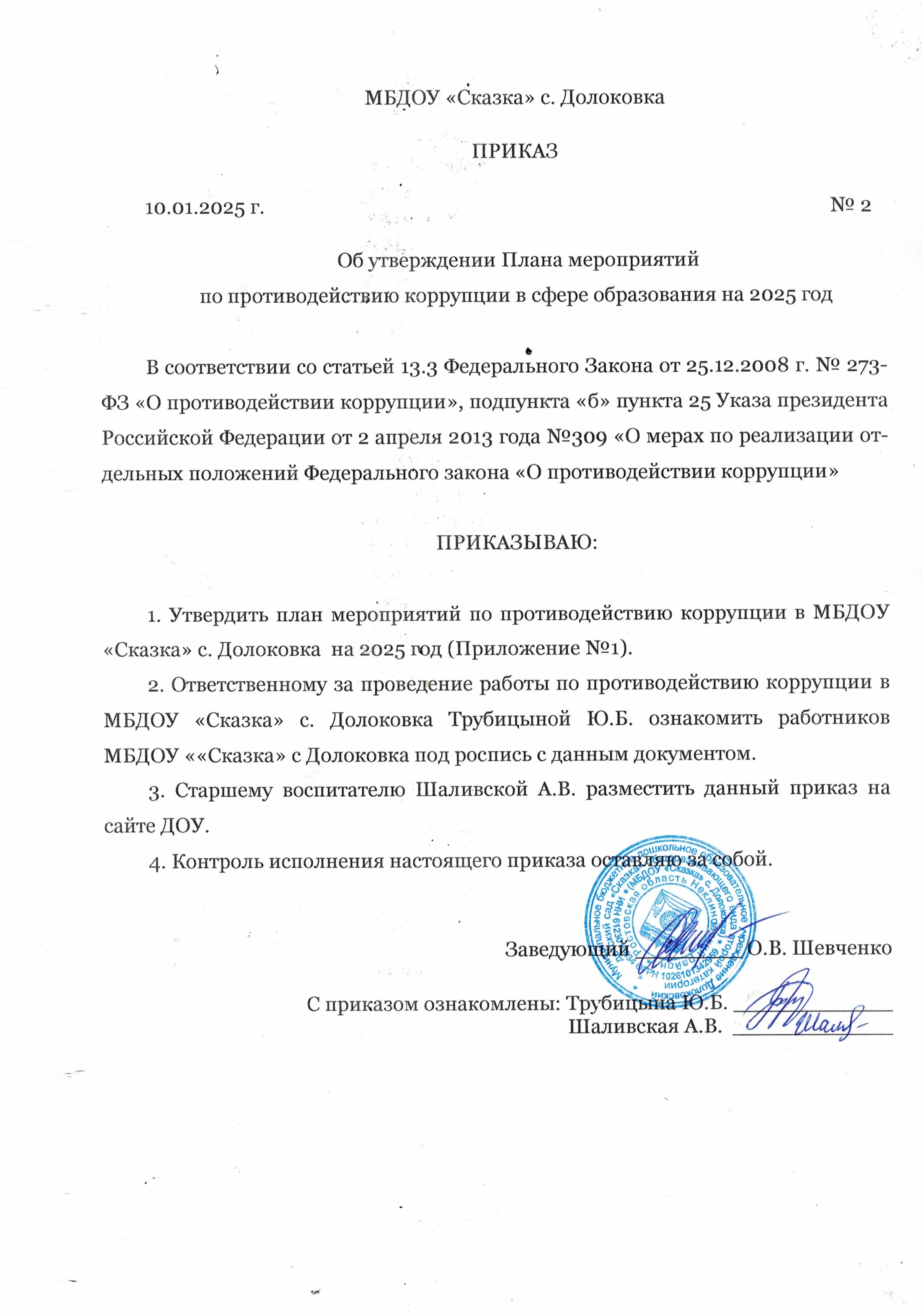 План мероприятий по противодействию коррупции на 2025 год
