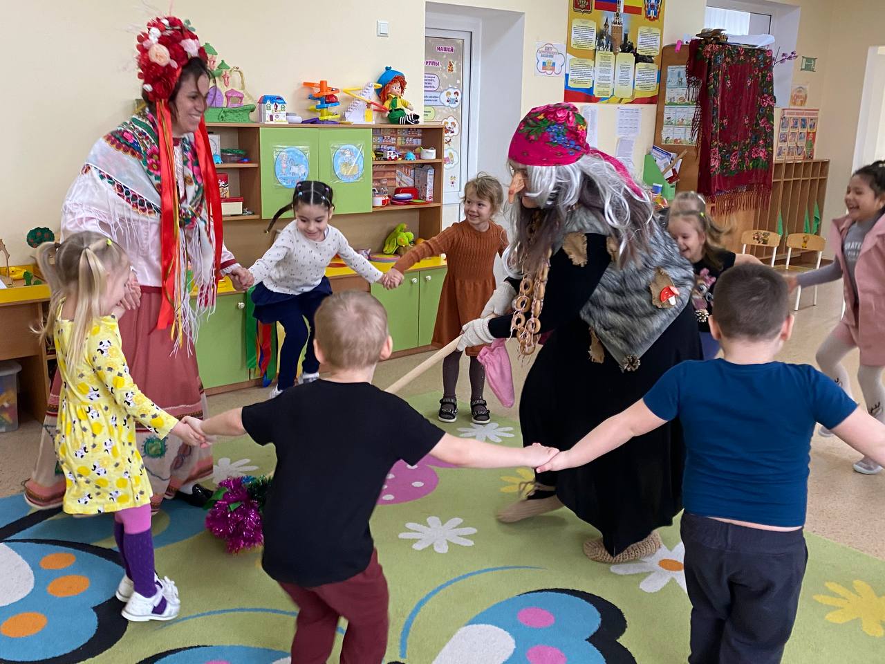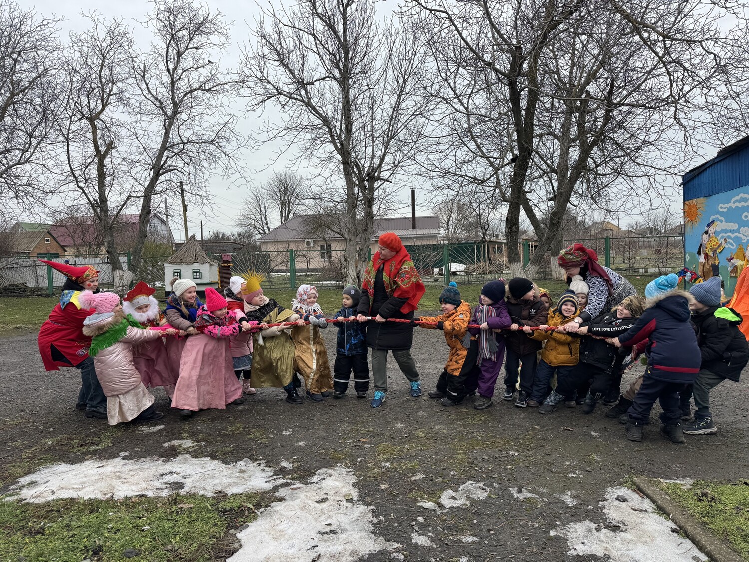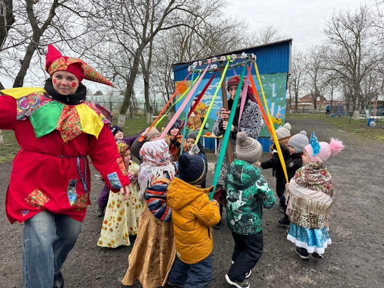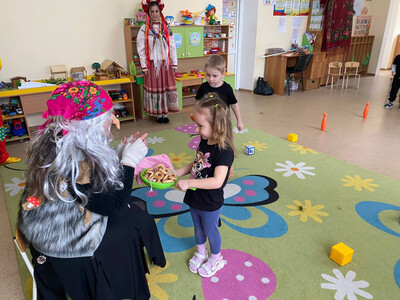 Празднование Масленицы стало доброй традицией в нашем детском саду – каждый год мы с радостью провожаем зиму и встречаем весну в атмосфере настоящего народного веселья. Масленица – замечательный, светлый праздник, пропитанный духом исконно русской культуры: озорной, весёлый, шумный и, конечно, очень вкусный. Его символы – яркое солнце, золотистые блины, напоминающие его лучи, и традиционное чучело Масленицы, которое олицетворяет уходящую зиму. В этот день детский сад наполняется смехом, песнями и задорными возгласами: повсюду звучат народные мелодии, дети и воспитатели наряжаются в яркие костюмы, а атмосфера становится по‑настоящему праздничной. Особенно оживили торжество любимые персонажи ребят – весёлый скоморох и озорная Баба Яга. Они с первых минут завладели вниманием дошкольников, закружив их в водовороте масленичных забав. Под их руководством малыши с азартом участвовали в разнообразных играх и конкурсах: перетягивали канат, бегали в мешках, соревновались в ловкости и смекалке.