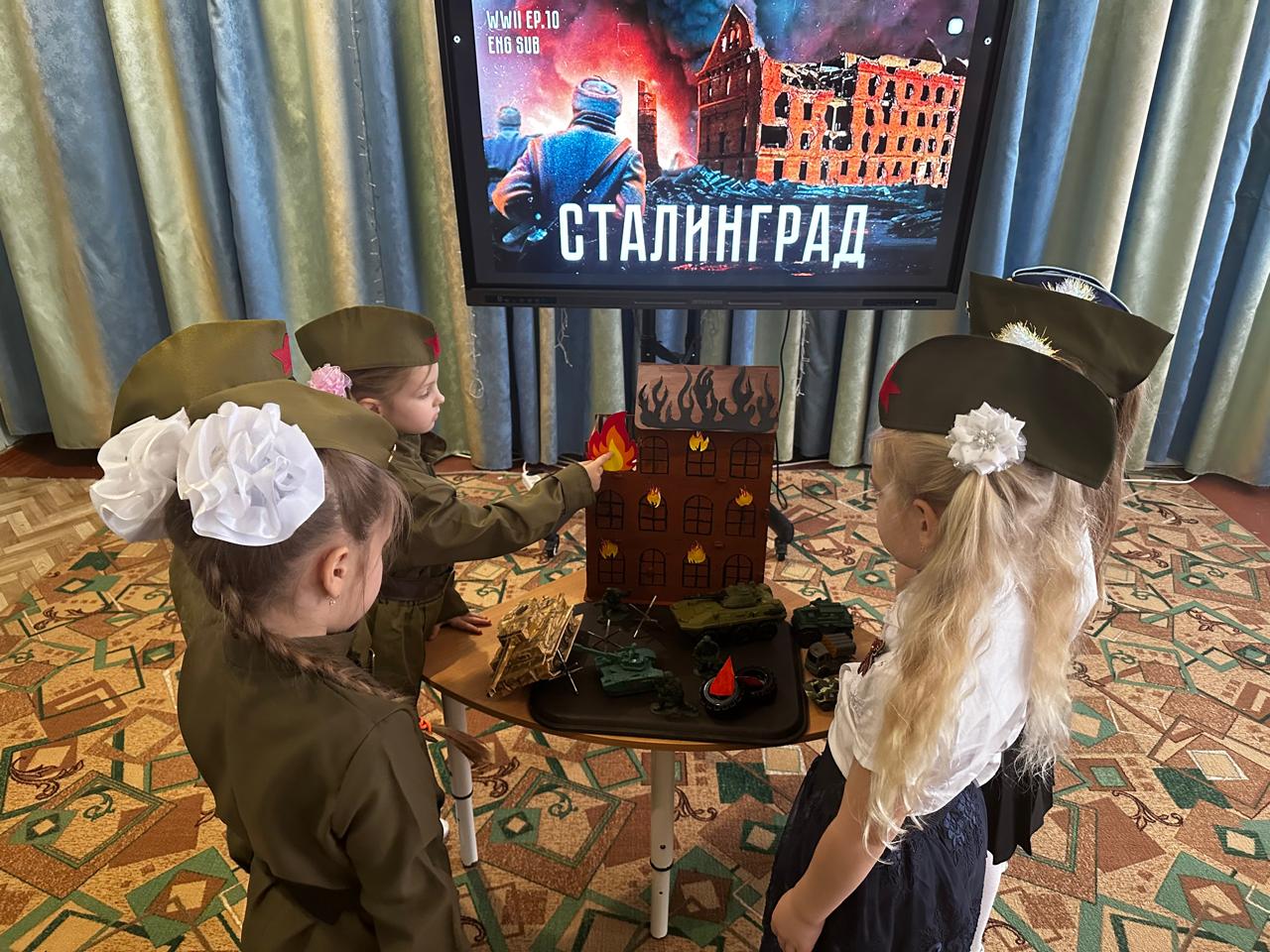 82 года назад, 2 февраля 1943 года, закончилась Сталинградская битва – одно из решающих сражений Великой Отечественной войны. 200 дней и ночей ожесточённых боёв на берегах Дона и Волги, на территории города Сталинграда (сейчас Волгограда) завершились решающей победой советских войск. В старшей группе «АБВГДейка» прошло тематическое занятие «Сталинградская битва». Дети узнали о героической Сталинградской битве, о том, что Великая Отечественная война – это тяжелейшее испытание, выпавшее на долю всех жителей нашей страны. Перенестись в пылающий Сталинград, ощутить атмосферу того страшного времени, прикоснуться к истории сражения нашим воспитанникам помог видеофильм о Сталинградской битве, который ребята смотрели, затаив дыхание. Просматривая иллюстрации, отражающие время жарких боев, ребята смогли убедиться, какой дорогой ценой досталась победа, как выстоял город под стальным дождем. Педагоги познакомили детей с рассказом «Ни шагу назад» из книги Сергея Алексеева «Рассказы о Великой Отечественной войне» о героизме советских людей, ставших грудью на защиту своей страны. Ребята узнали о героях Сталинградской битвы, о маршале Василии Ивановиче Чуйкове, «генерале Штурм», военачальнике, который отстоял Сталинград, внук которого, Чуйков Николай Владимирович, является частым гостем в нашем детском саду. Одна из наших воспитанниц, побывавшая в этом городе со своей семьей, поделилась впечатлениями от увиденного со своими друзьями. Дети совершили видео-экскурсию на Мамаев курган и мемориальный комплекс с одной из высочайших скульптур мира «Родина-мать зовет!». Увиденное на экране дети отобразили в своих рисунках, которые стали основой для выставки «Сталинград». Наши воспитанники наглядно представили себе события, происходящие в то страшное время, воссоздав фрагмент Сталинградской битвы: семья Ендрецкой Евы изготовила макет разрушенного горящего дома, ребята принесли из дома военную технику, танки, военные машины. По окончании мероприятия дошкольники почтили память павших бойцов в Великом сражении под Сталинградом минутой молчания. Победа под Сталинградом является результатом несгибаемой стойкости, мужества и массового героизма советских воинов, которые проявили невероятное мужество в условиях жесточайших испытаний. Эта победа стала символом силы духа и единства всего советского народа в борьбе против фашизма. | |
