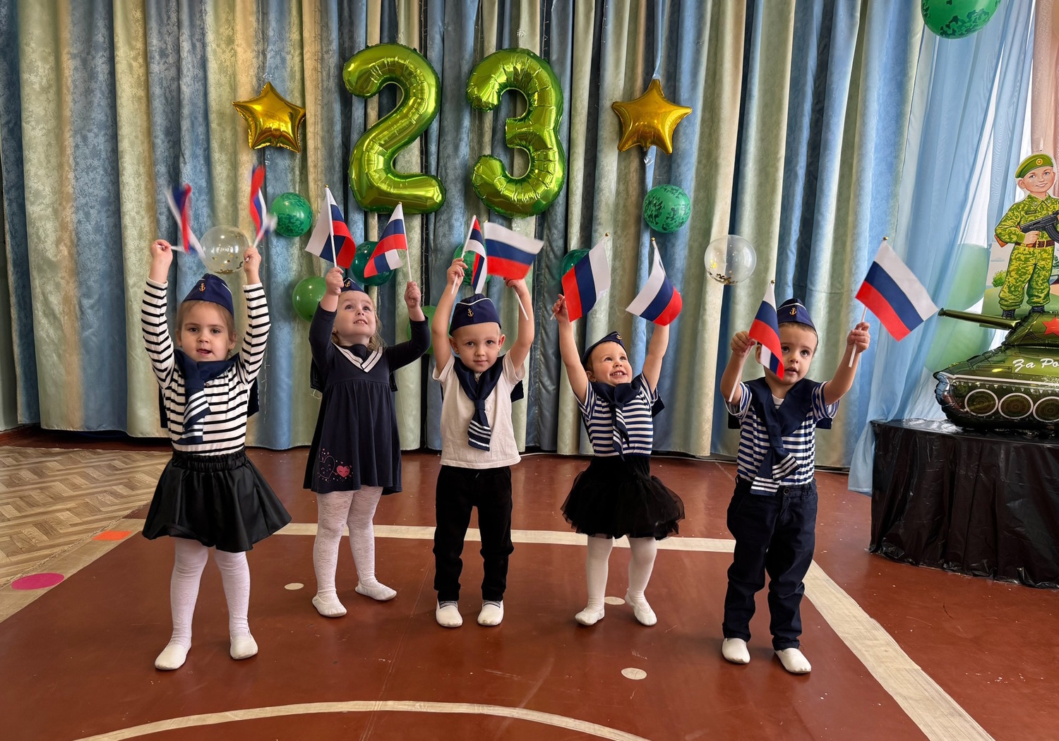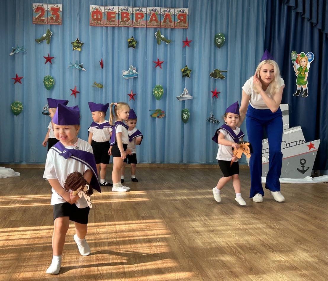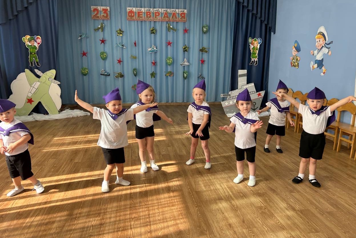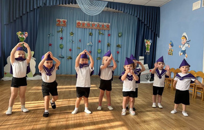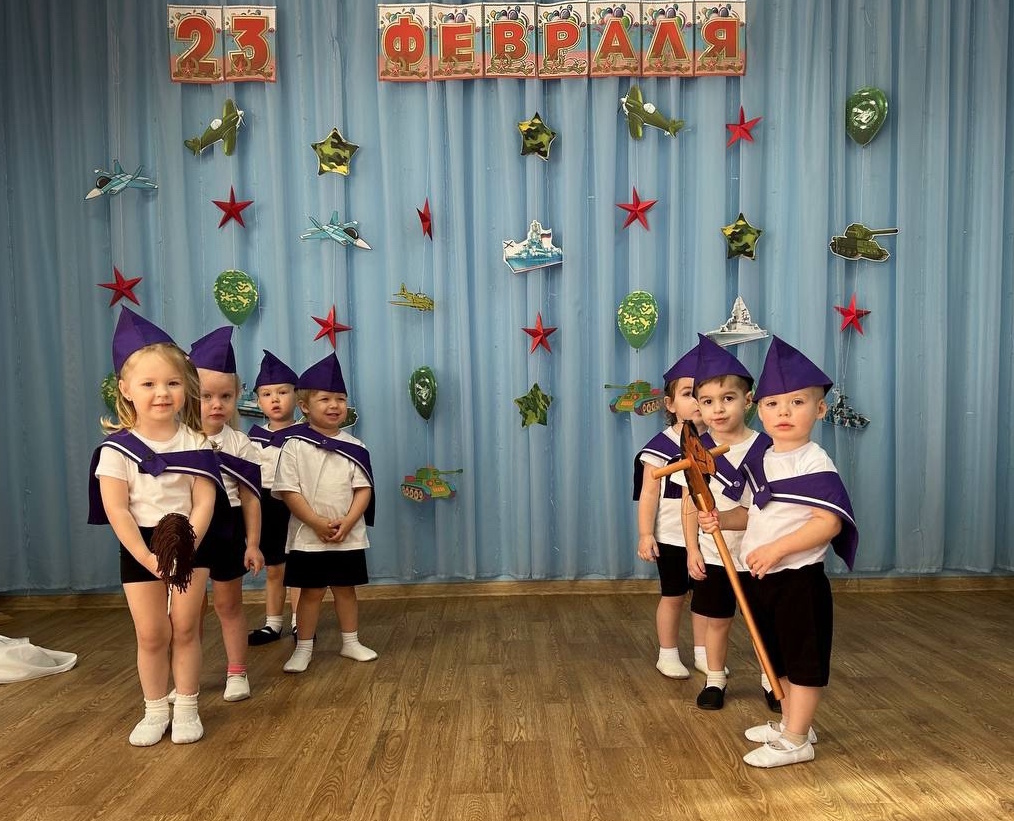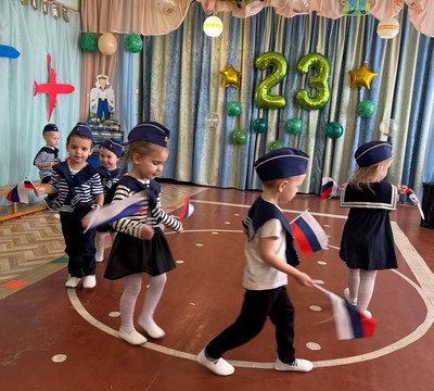Накануне Дня защитника Отечества во всех возрастных группах прошли праздничные мероприятия, посвященные этому знаменательному дню – дню мужества и чести, доблести и самоотверженности воинов всех поколений. Ребята-дошколята младших групп «Звездочки» и «Непоседы» были морячками. Они задорно танцевали «Яблочко», маршировали с флажками и с большим удовольствием играли в веселые игры. Яркие костюмы морячков добавили атмосферы праздника и веселья!