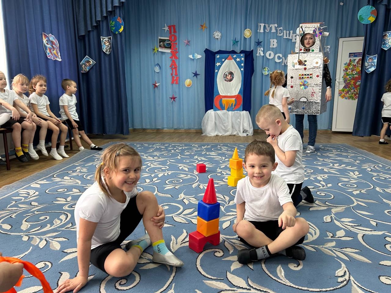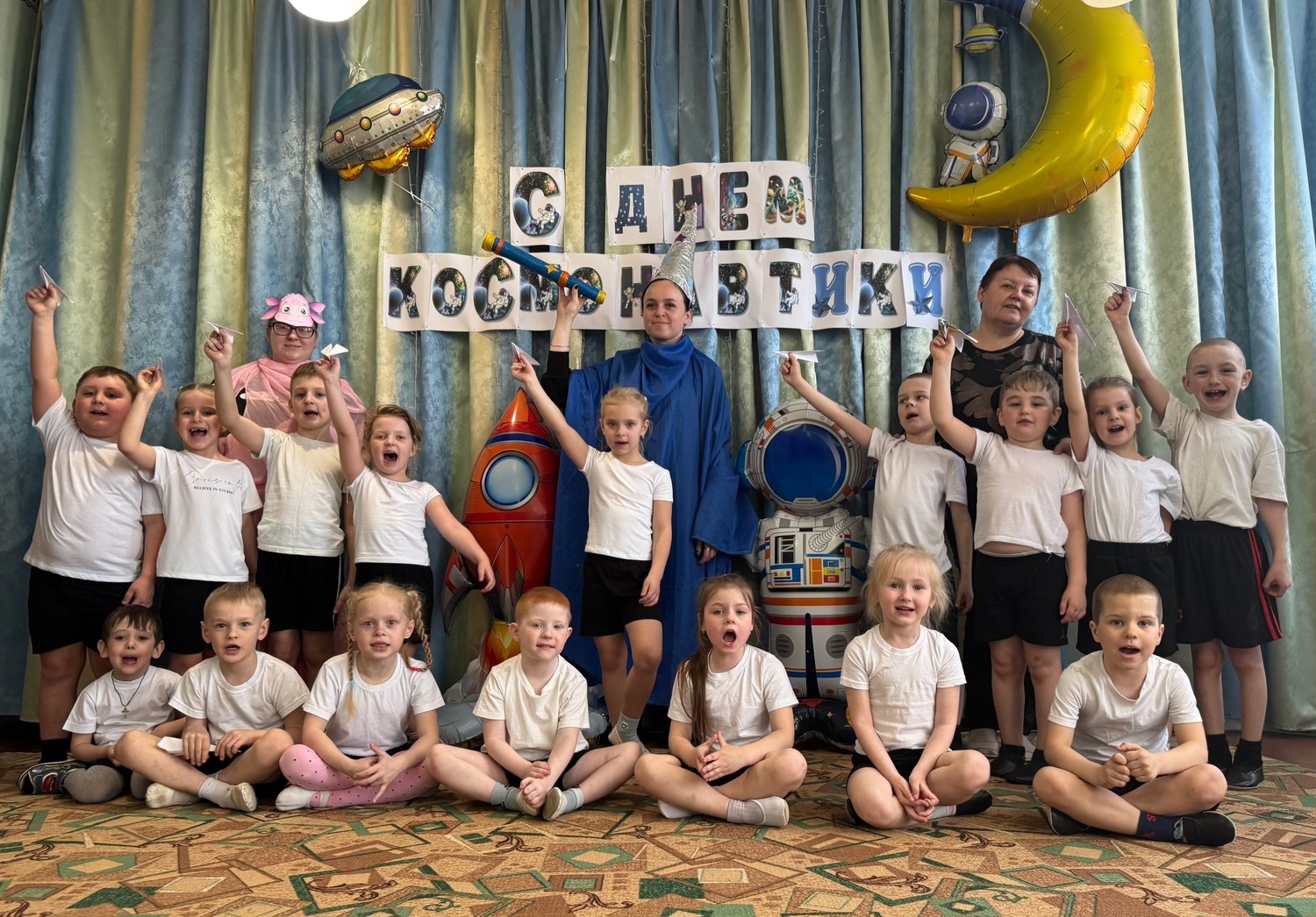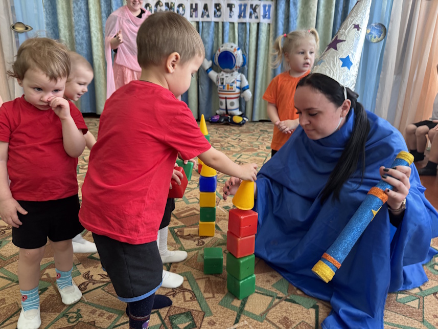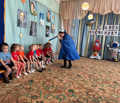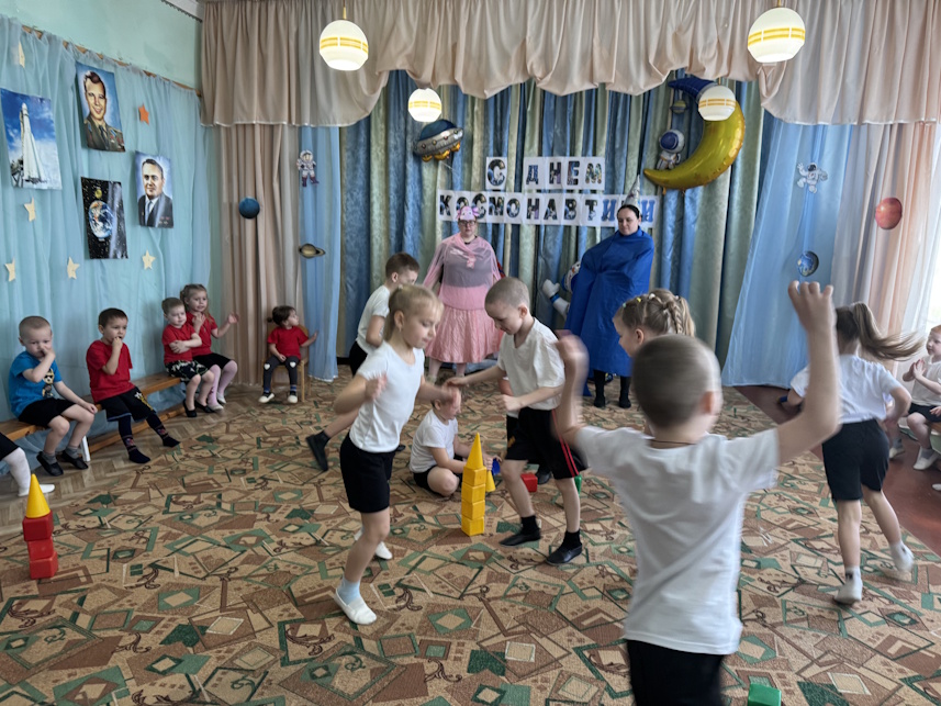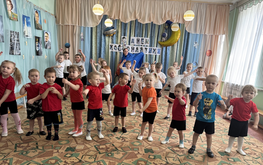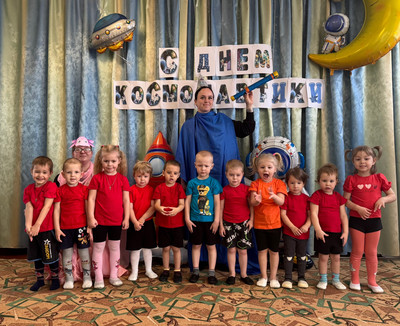Во всех группах нашего детского сада прошли развлечения на космическую тему. В Долоковке на праздник к ребятам пришли звездочет и милый космический пришелец Лунтик. Ребята показали гостям свою ловкость, знания о космосе и помогли Лунтику вернуться на свою планету. Наши воспитанники из поселка Золотая Коса с удовольствием побывали в космосе вместе со звездочетом, сделали космическую зарядку и повстречали космического робота. | |