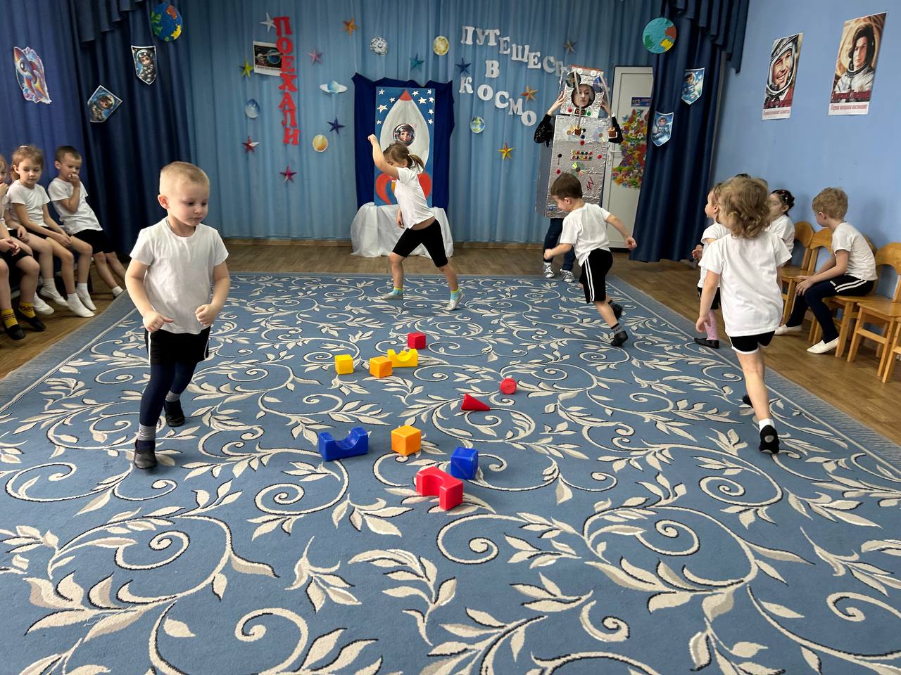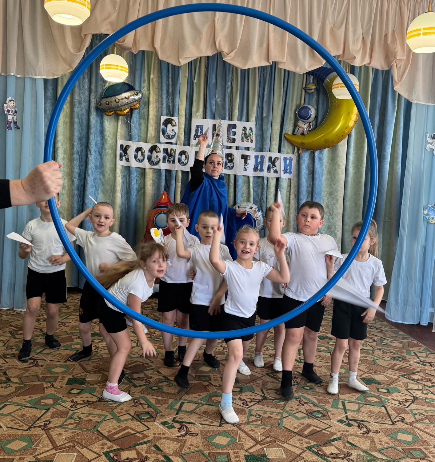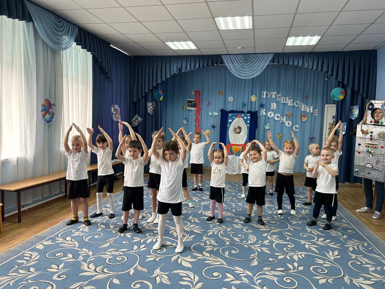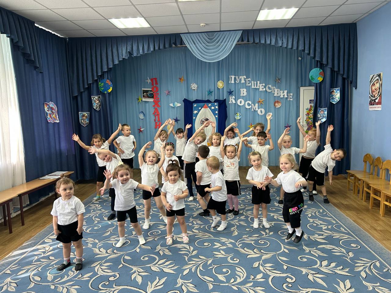 Во всех группах нашего детского сада прошли развлечения на космическую тему. В Долоковке на праздник к ребятам пришли звездочет и милый космический пришелец Лунтик. Ребята показали гостям свою ловкость, знания о космосе и помогли Лунтику вернуться на свою планету. Наши воспитанники из поселка Золотая Коса с удовольствием побывали в космосе вместе со звездочетом, сделали космическую зарядку и повстречали космического робота. | |