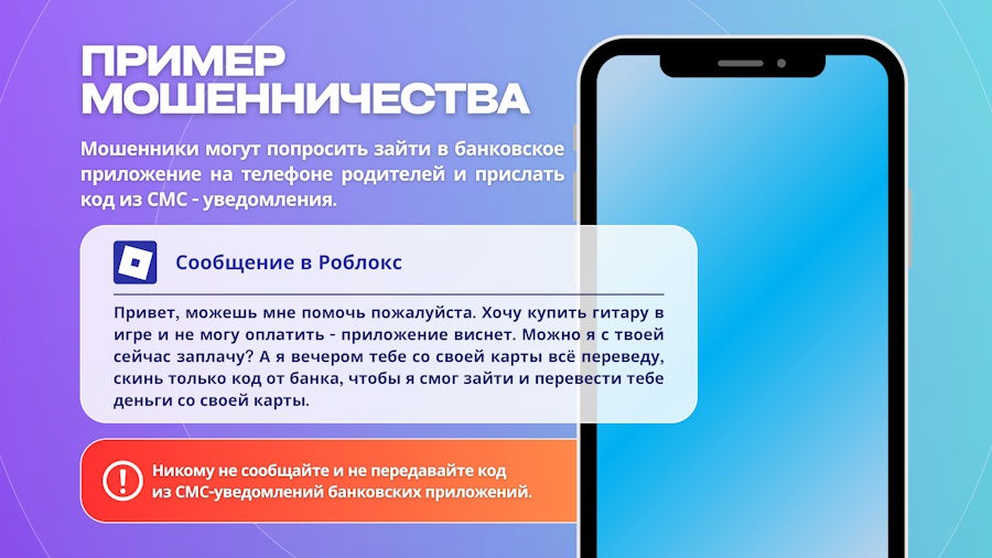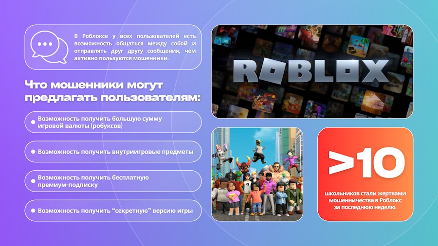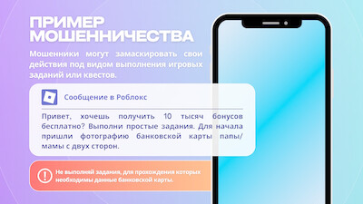 За последнее время участились случаи мошенничества в отношении детей с использованием онлайн-игр (Роблокс, Страж королевства и других).