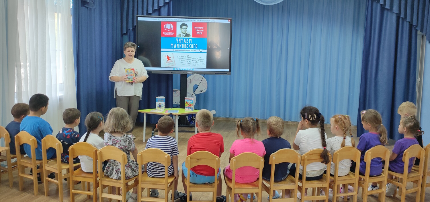 Воспитанники старшей группы «Радуга» стали участниками III Межрегиональной акции «Читаем Маяковского». Владимир Маяковский написал для детей более 20 произведений: стихотворений, песен, сказку в стихах. Наиболее известные из них «Кем быть?», «Что такое хорошо и что такое плохо?», «История Власа, лентяя и лоботряса». Эти произведения способствуют обучению ребенка хорошим качествам, навыкам, доводят до сознания детей, что ценность человека определяется трудолюбием. Герои его произведений преодолевают невежество и лень. Основные контрасты — это черное и белое, добро и зло. Ребята приняли участие в громком чтении стихотворения «Что такое хорошо и что такое плохо». Дошколята посмотрели мультфильм «Кем быть?», отгадывали загадки на тему «Профессии», поделились своей мечтой о том, кем они хотят стать, когда вырастут. Вот так весело и познавательно прошел еще один день наших маленьких «почемучек». | |