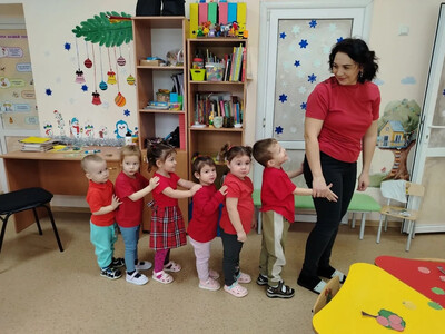 Утро началось с увлекательной беседы «Что бывает красным?». Дети с энтузиазмом делились своими наблюдениями: называли красные цветы и ягоды, вспоминали красные игрушки, одежду и даже светофоры. Малыши с интересом узнавали, что красный – это ещё и цвет любви, праздника, а также сигнал «стоп» на дороге. Воспитатели дополняли рассказы ребят интересными фактами: например, что многие спелые плоды становятся красными, чтобы привлечь птиц и животных, – так растения распространяют свои семена. Затем ребята перешли к игровым активностям, которые помогли закрепить восприятие цвета и развить важные навыки: «Повесь на дерево красные яблочки». Дети по очереди прикрепляли к макету дерева яркие красные яблочки. Игра тренировала мелкую моторику, координацию движений. Каждый старался, чтобы яблоневый сад получился красивым и полным. «Найди и покажи красный предмет». В групповой комнате мы заранее разложили предметы красного цвета. Ребята с азартом искали их, называли вслух и складывали в специальную корзину. Эта игра отлично развивала внимание, зрительное восприятие и активный словарный запас.