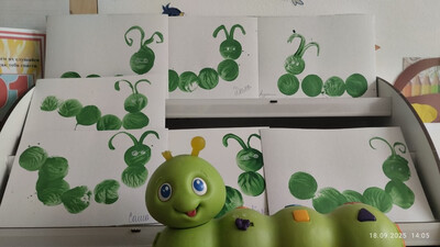 В группу «Звёздочки» к малышам пришла грустная гусеница Алёна. Она была очень расстроена, ведь у нее не было друзей. Воспитатель предложила ребятам нарисовать друзей для Алёны. Ребята рисовали гусениц, состоящих из нескольких частей округлой формы с помощью крышки методом печатания. «Посмотри гусеница, сколько у тебя теперь новых друзей!» Гусеница обрадовалась и поблагодарила ребят за помощь.